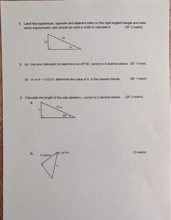 Find the length of the side y: Tan ( q) = old/aunt = opposite/adjacent. Step 3 put our values into the tangent function: Cos ( q) = and/his = adjacent/hypotenuse. Connect that angle to the right angle in the triangle, and that's the adjacent side.